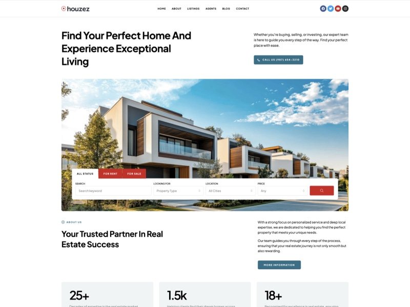 Perfect for real estate agencies that want to showcase their portfolio, team, and brand with modern layouts built for conversion and trust.